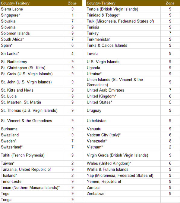 UPS Parcel Zone Chart
